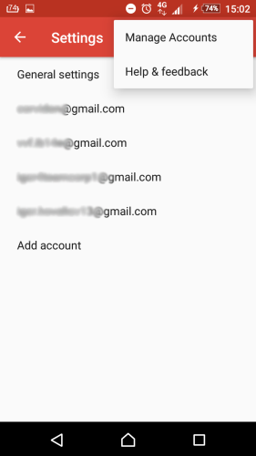 2. Go to the App “Settings” and click on “Manage Accounts”;